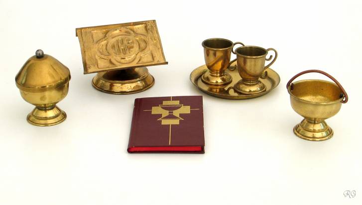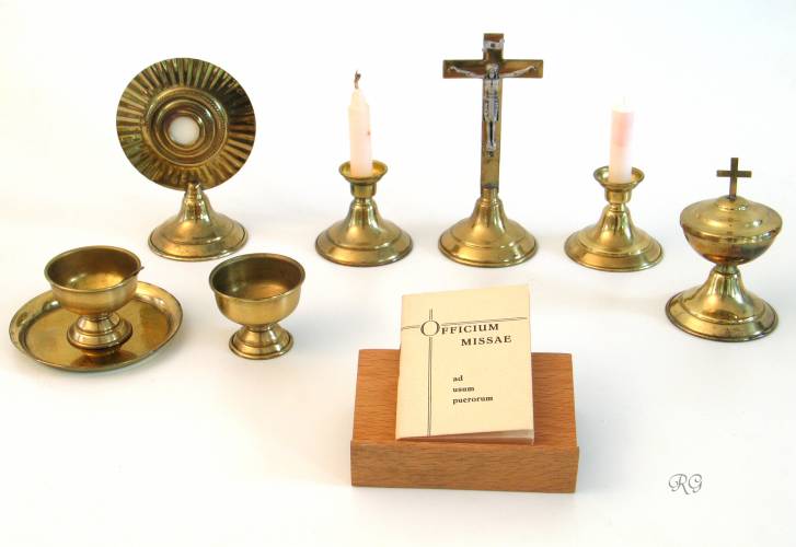 cm, kruisbeeld 12 cm, misboek. Ca. 1936