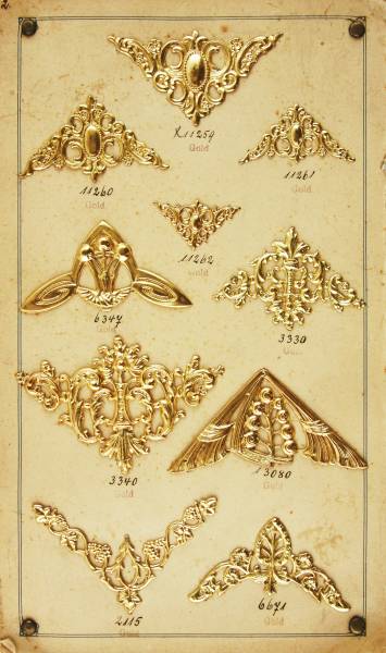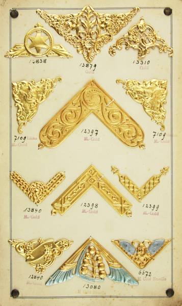 Metalen versierselen in relief, soms verguld.
